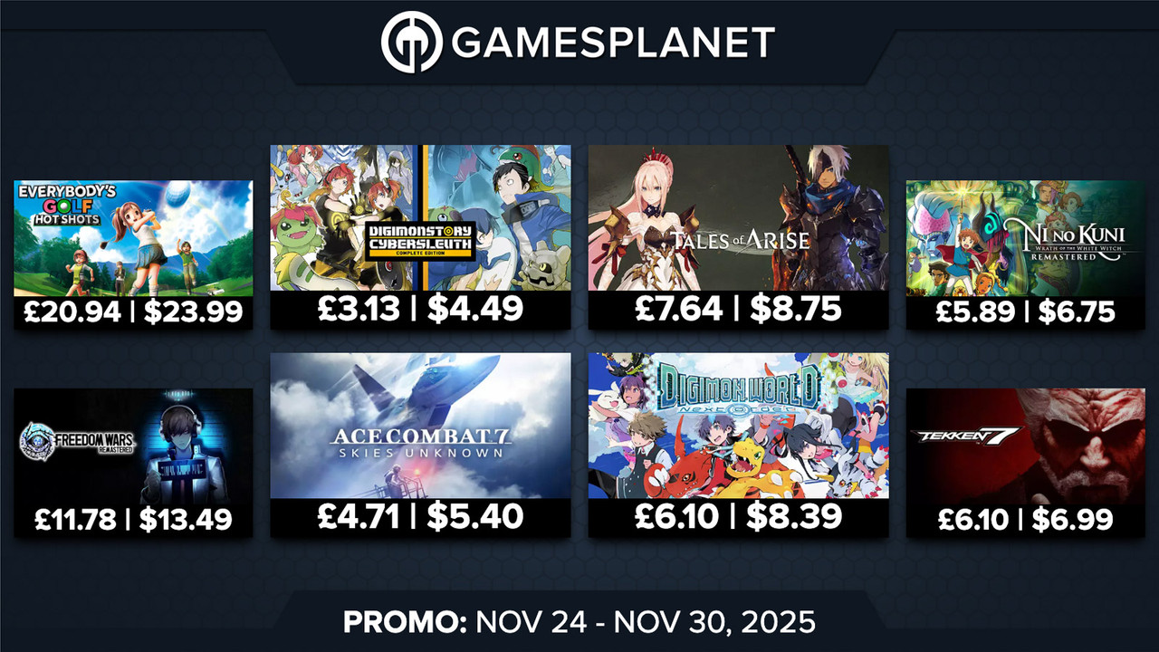 Black Friday week continues, with even more promotions to sink your teeth into - over 1000 offers and a few key titles releasing. See what's on Gamesplanet this week (up to Nov 30th 2025).