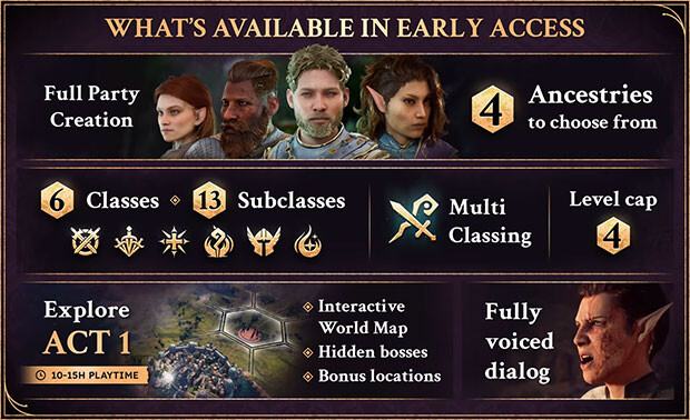 At launch, six classes, 13 subclasses, four ancestries, and a level cap of 4 in Chapter 1 will be playable. Tactical Adventures has also published a roadmap for the rest of the Early Access period: