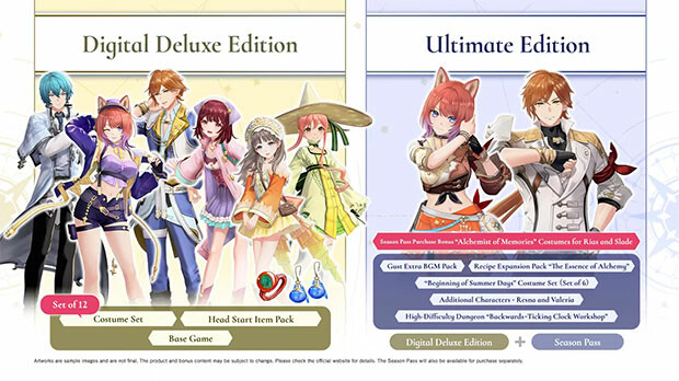 Atelier Resleriana: The Red Alchemist & the White Guardian Ultimate Edition includes: The Main Game, Digital Deluxe Pack, The Red Alchemist & the White Guardian - Atelier Season Pass and the Season pass purchase bonus: "Alchemist of Memories" Costumes for Rias and Slade.