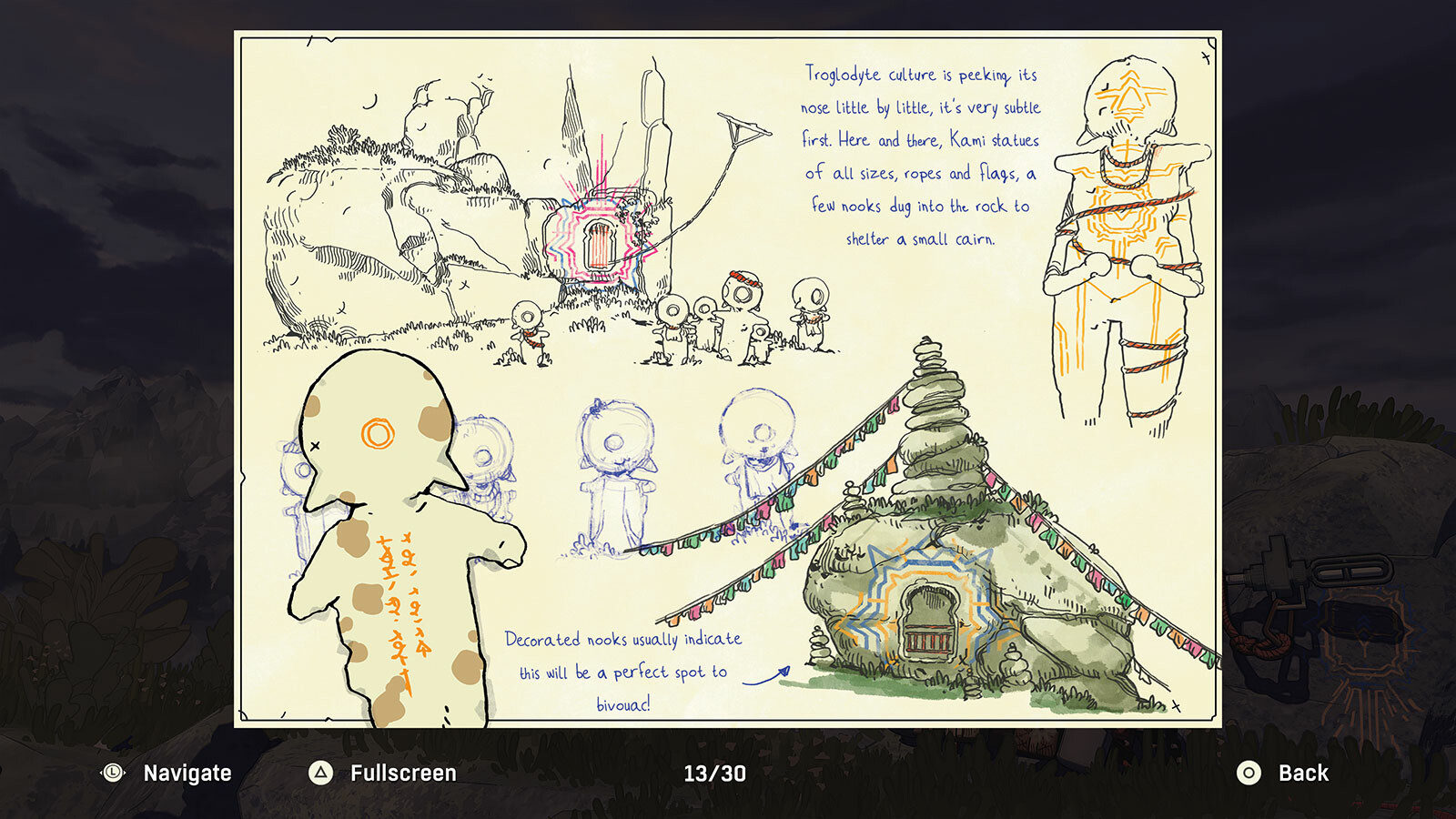 • Kami travel book: Marcel and Pontus’ latest attempt at climbing Mount Kami. This rugged little guide includes tips, sketches, and a recounting of what they saw up there. Illustrated by comic artist & game art director Mathieu Bablet. 30 pages, English & French.