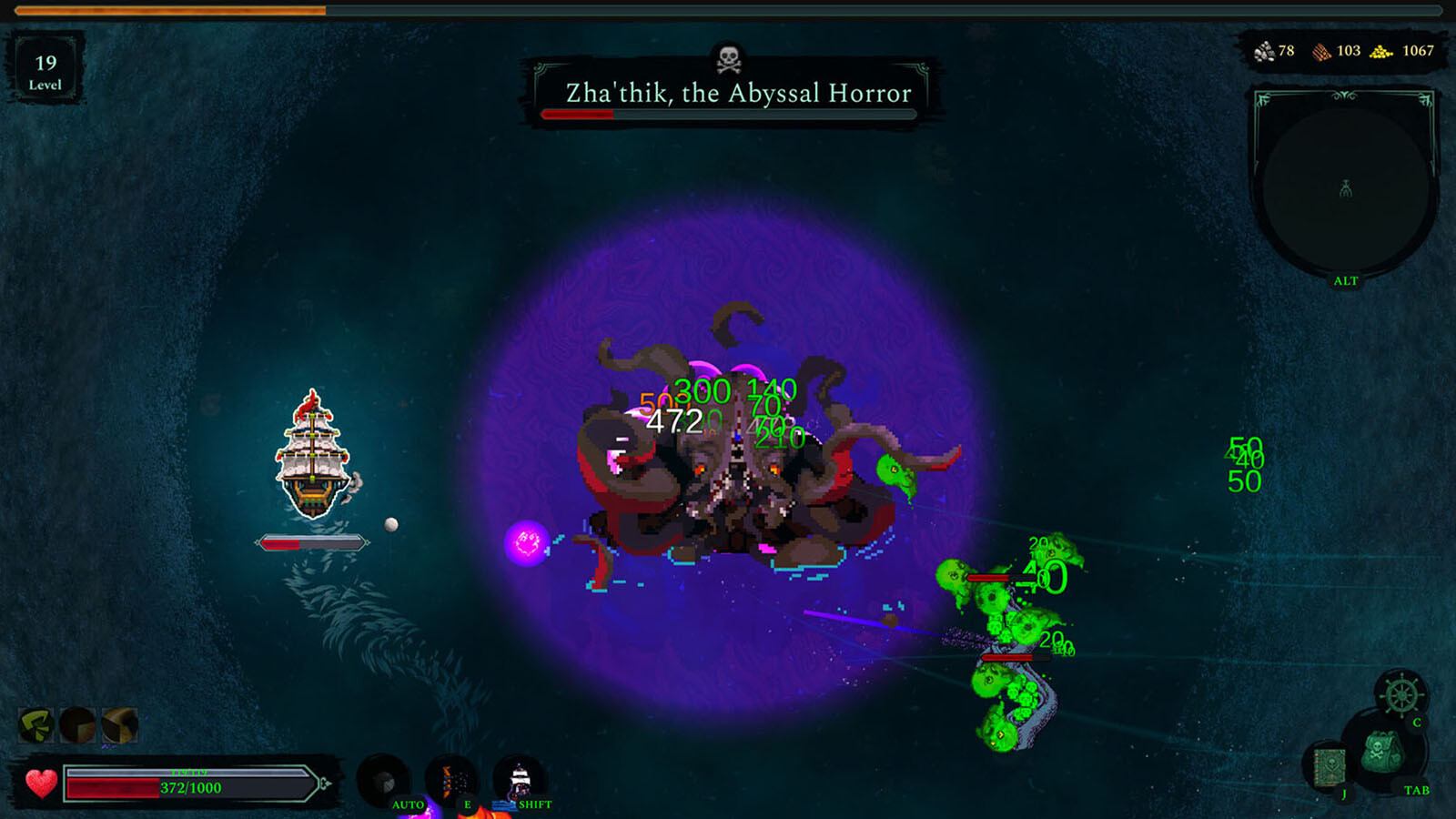 • Epic maritime campaigns! Several acts filled with brutal bosses will take ye through whirlpools, ship graveyards, and the lairs of monsters thirsting for yer blood!
