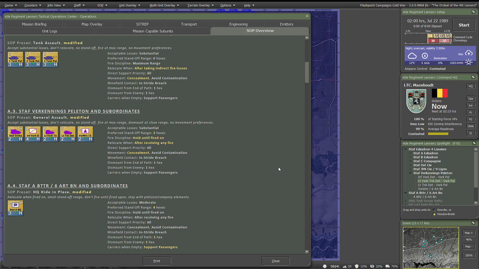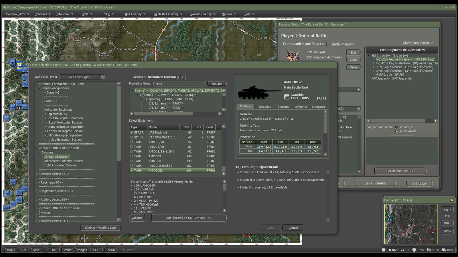 Flashpoint Campaigns: Cold War is a data-rich simulation where each nation has information on National Characteristics, Command Parameters, and Orders of Battle. Data Tables are packed with era-specific equipment and troops. Weapon Systems of the time, such as guns, missiles, precision munitions, small arms, and much more, are comprehensively modeled.