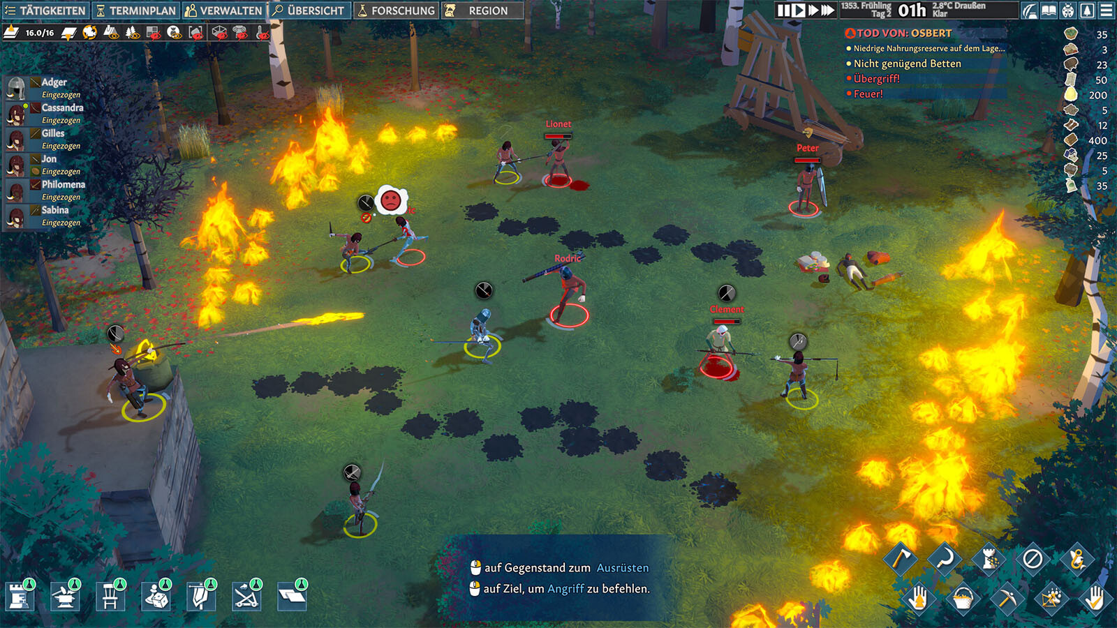 Each settler is a unique character. Consider Grimbold, for example. As a Swineherd, his Animal Handling is second to none. But his personality is Savage, so he’d make a strong Brawler. He likes nice clothes, his religion is dear to him — and he’s hungry. Satisfy Grimbold’s needs, use his talents, and he’ll be a happy settler — key to a happy settlement.