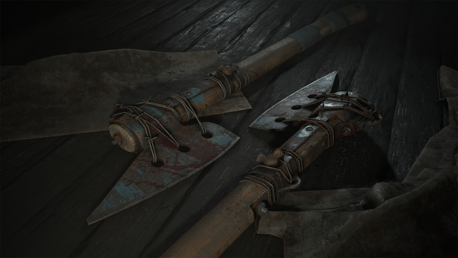 Crafted with rage and wielded with malice, this gruesome combat axe came to be when a desperate Hunter was forced to repair the blade in the field with barbed wire in the midst of a revenge-fueled melee slaughter.