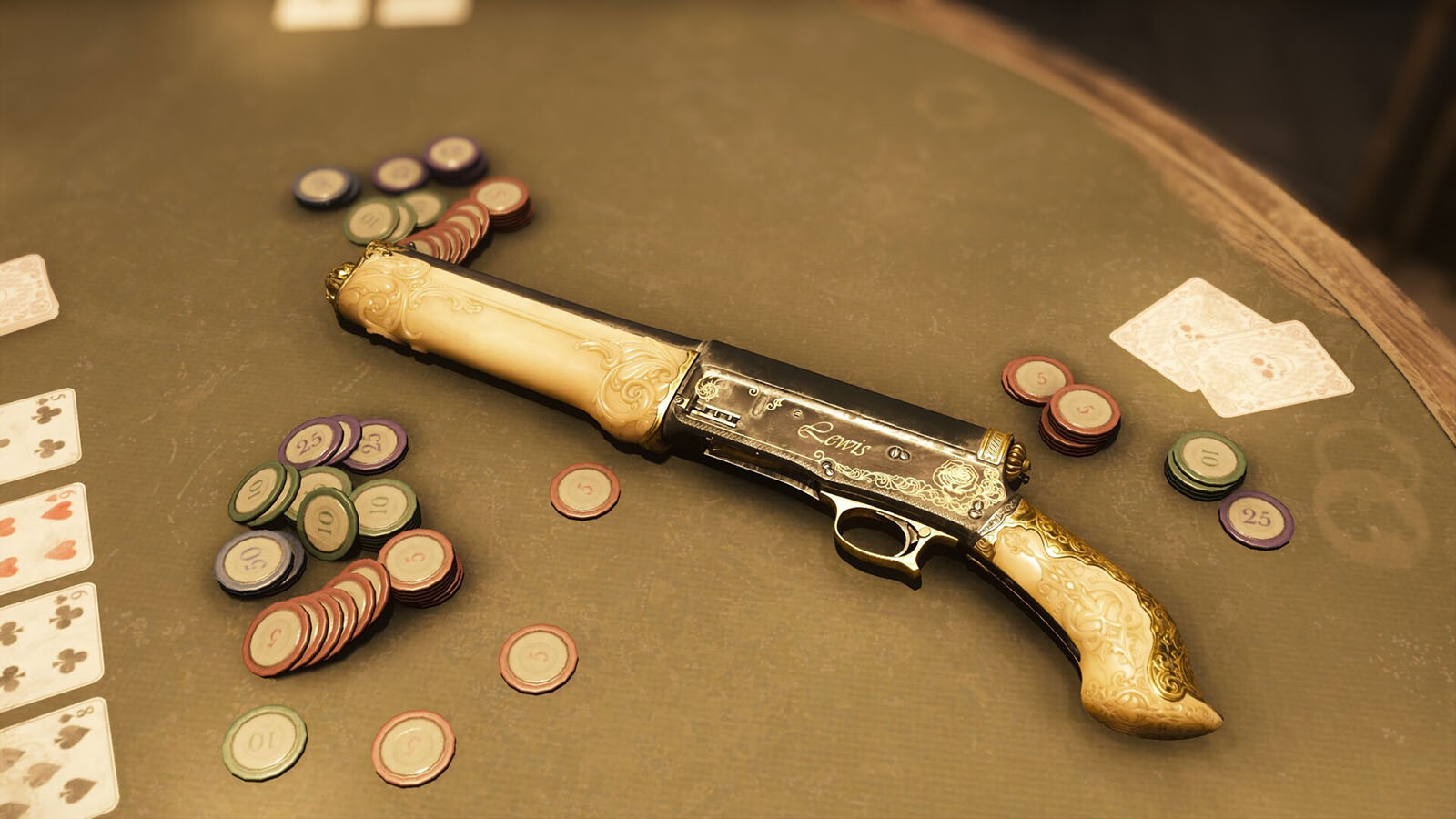 Lady Lewis liked to keep this Auto-4 Shorty underneath the counter of the saloon, only wielding it for a special type of someone. It isn’t as though she didn’t warn them: act like a pig, and suffer the wrath of the pearl.